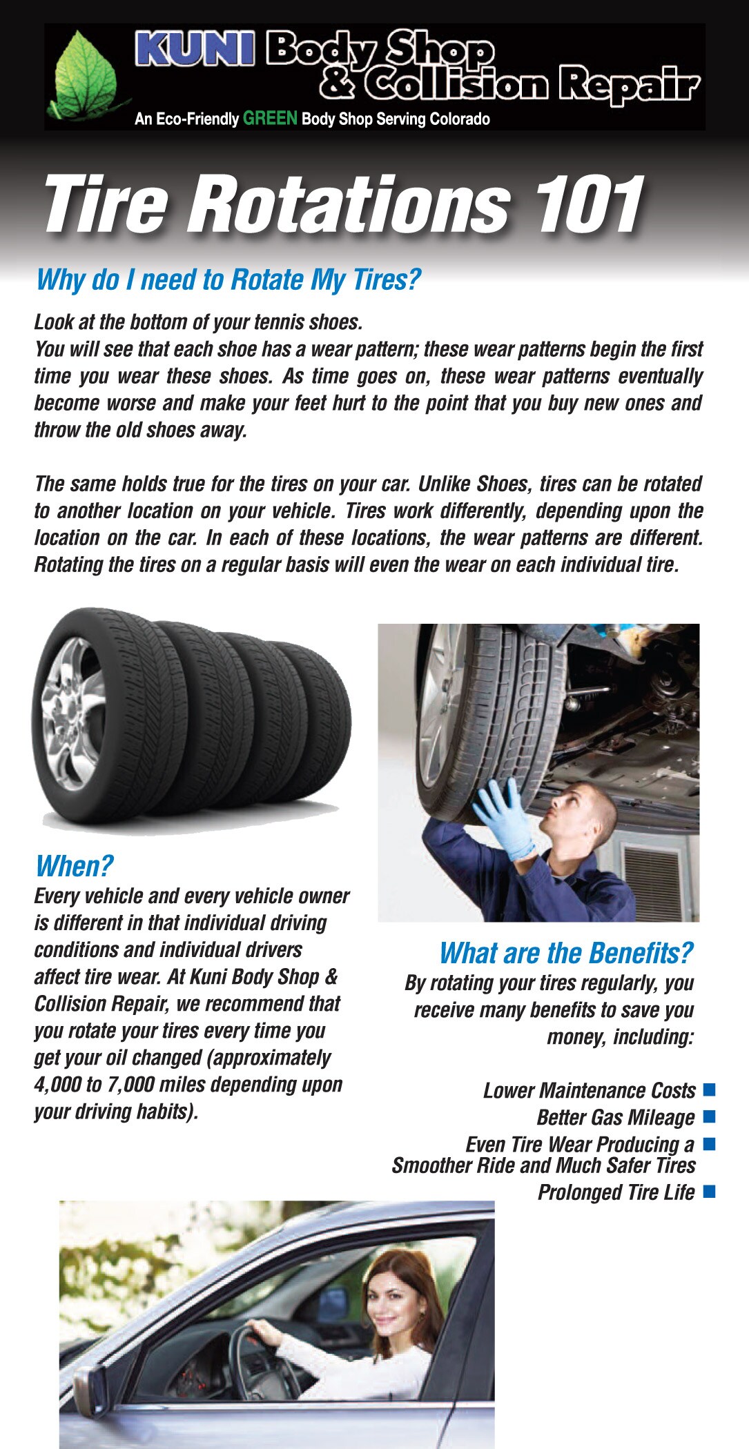 TO CARS & TIRES. 1 As parents, we always pride ourselves in doing all we can to watch out for our family. In that role, we are constantly learning new ways to ensure all Rotate Tires Regularly Front tires tend to wear more quickly than rear tires. Periodical rotation of front and rear tires ... Read Here